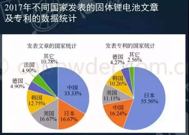 在固體鋰電池方面中國發表的文章數量占據第一位,國際發明專利方面日本占據一半以上,其中豐田以 26 篇占據了第一位。