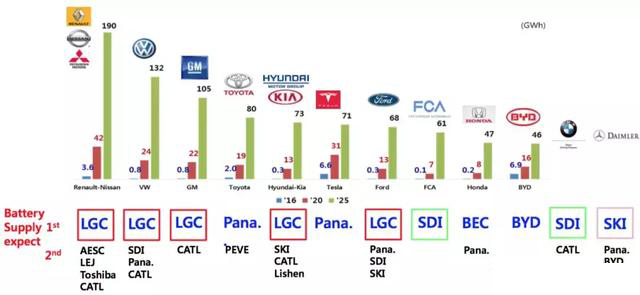近期面世的報(bào)告顯示,韓國的SNE research對(duì)于電動(dòng)汽車的發(fā)展比較樂觀,認(rèn)為在2025年時(shí)PHEV和BEV的銷量將達(dá)到汽車總銷量的21%左右,大眾和日產(chǎn)都將銷售超過200萬輛電動(dòng)汽車,在這一預(yù)測(cè)下SNE認(rèn)為2025年,動(dòng)力