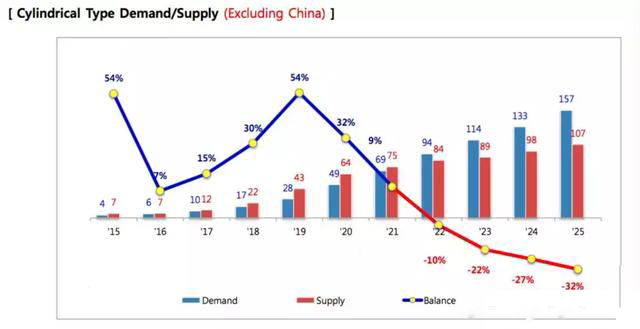 動(dòng)力電池的產(chǎn)能過剩是不爭(zhēng)的事實(shí),特別是中國市場(chǎng)產(chǎn)能過剩尤為嚴(yán)重,三大類鋰離子電池(圓柱、方形和軟包電池)都面臨著產(chǎn)能過剩的挑戰(zhàn),根據(jù)SNE的預(yù)測(cè)(注:以下數(shù)據(jù)不包含中國市場(chǎng)),軟包電池的處境相對(duì)好一些,由于需求增長較快,因此在2019年就能走出產(chǎn)能過剩的陰影,并且產(chǎn)能的缺口會(huì)持續(xù)增大,到2025年產(chǎn)能缺口將達(dá)到61%。方形電池的需求增長相對(duì)較慢,因此產(chǎn)能過剩的狀況將一直到2020年才能得到緩解,此后產(chǎn)能不足的缺口還將持續(xù)擴(kuò)大,在2025年將達(dá)到44%。圓柱形電池的情況則相對(duì)比較尷尬,隨著產(chǎn)能的持續(xù)增加,在2019年之前產(chǎn)能過剩的狀況將持續(xù)惡化,2019年將達(dá)到高峰,產(chǎn)能過剩54%,此后逐漸降低,一直到2022年過剩產(chǎn)能才能完全消化,此后隨著需求的增加,此后產(chǎn)能不足的問題會(huì)一直持續(xù),到2025年產(chǎn)能缺口將達(dá)到32%。