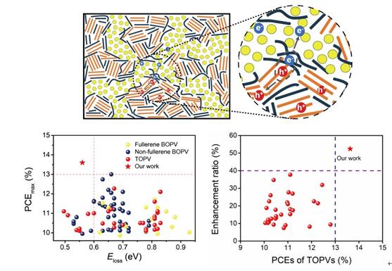 圖2. 分級結構示意圖和有機太陽能電池性能統計