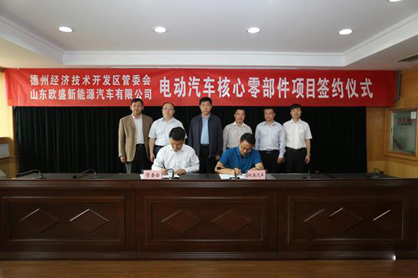 儀式上,沈四平與山東歐盛新能源汽車(chē)有限公司法定代表人何文革就年產(chǎn)15萬(wàn)套電動(dòng)汽車(chē)核心零部件項(xiàng)目簽約。該項(xiàng)目計(jì)劃投資19.6億元,主要生產(chǎn)新能源汽車(chē)電機(jī)、電控及傳動(dòng)變速器系統(tǒng),預(yù)計(jì)項(xiàng)目全部達(dá)產(chǎn)后,年生產(chǎn)新能源汽車(chē)電機(jī)、電控及傳動(dòng)變速器系統(tǒng)15萬(wàn)套,實(shí)現(xiàn)銷(xiāo)售收入35億元,稅收3億元。