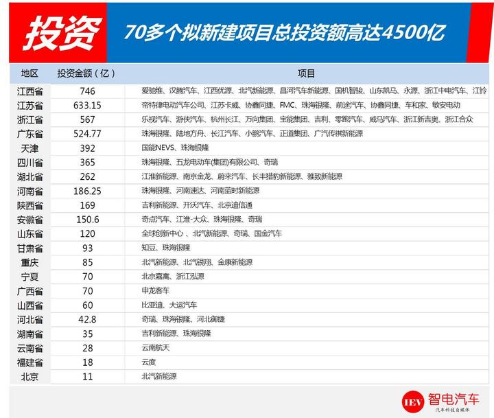 當然名單中也有像珠海銀隆這樣的特色企業,擬在天津、江蘇、廣東、四川、河南、甘肅等9個省市投資近千億搞新能源汽車,產能超過88萬輛。