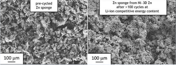 現(xiàn)在,科研團(tuán)隊(duì)找到了一種抑制電池內(nèi)部導(dǎo)電細(xì)絲產(chǎn)生的方法:將鋅陽極做成多孔海綿狀結(jié)構(gòu)。充放電期間,電流在鋅陽極上的分布更均勻,因此導(dǎo)電細(xì)絲難以產(chǎn)生。