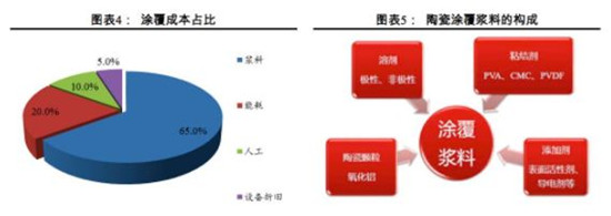 涂覆隔膜的成本主要來自于漿料、設備折舊、人工、能源等,其中漿料是最為主要的成本。