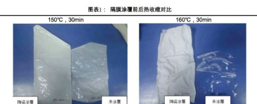 陶瓷的剛性支撐作用,使得陶瓷改性隔膜高溫時具有優良的熱穩定性和尺寸完整性,對高溫下隔膜結構的維持有支撐作用,在高溫下隔膜基體均已閉孔透明,未涂覆隔膜收縮嚴重,而涂覆隔膜由于陶瓷層存在抗收縮性大幅提升,機械性和安全性更好。