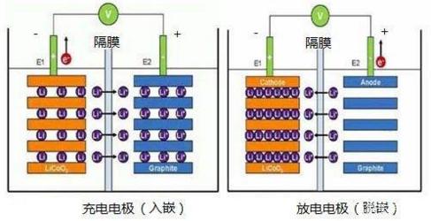 在電場的驅動下鋰離子從正極晶格中脫出,經過電解質,嵌入到負極晶格中。