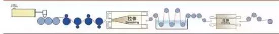 濕法同步拉伸技術(shù)工藝流程與異步拉伸技術(shù)基本相同,只是拉伸時(shí)可在橫、縱兩個(gè)方向同時(shí)取向,免除了單獨(dú)進(jìn)行縱向拉伸的過程,增強(qiáng)了隔膜厚度均勻性。但同步拉伸存在的問題第一是車速慢,第二是可調(diào)性略差,只有橫向拉伸比可調(diào),縱向拉伸比則是固定的。
