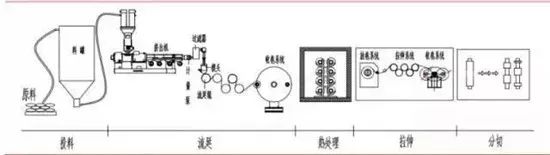 1)投料:將PE或PP及添加劑等原料按照配方預(yù)處理后,輸送至擠出系統(tǒng)。