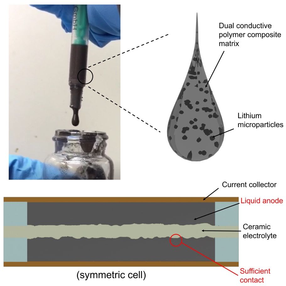 圖1. 一種半液態(tài)的鋰金屬/聚合物復(fù)合電極材料。