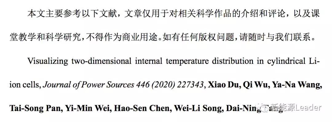 近日,北京理工大學的XiaoDu(第一作者)和Wei-Li Song(通訊作者)、Dai-Ning Fang(通訊作者)等人開發了一種原位觀測圓柱形電池在直徑方向上的溫度分布的方法,通過該方法作者發現在3C倍率下,鋰離子電池內部的最大溫度梯度會達到4.73℃。
