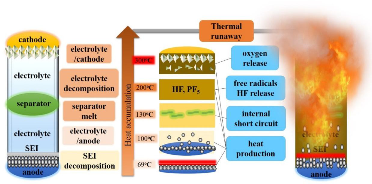 在鋰電池沒有大規(guī)模應(yīng)用在儲(chǔ)能和動(dòng)力電池組商用以前,熱失控是指鉛酸電池在充電時(shí),電流和溫度均升高且互相促進(jìn)的現(xiàn)象。最終可能導(dǎo)致鉛酸電池膨脹、燒毀。隨著鋰電池的大規(guī)模商用,熱失控在鋰電池組中的顯現(xiàn)更加明顯,通常發(fā)生在充電和放電期間,特別是以充電期間發(fā)生熱失控的概率更高一些,鋰電池發(fā)生熱失控后,其產(chǎn)生的危害、造成的后果、危險(xiǎn)甚至超過鉛酸蓄電池。