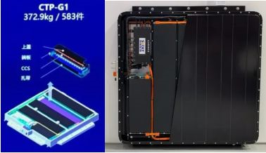 現(xiàn)實來說,這個有點像之前蜂巢展示的一個長條的CTP方案,如下圖所示,這兩個在結(jié)構(gòu)上比較相似。為了保證足夠的壓力,這里中間還是放置了隔板,可以兼容原有的軟包和方殼電芯的方案。也就是說,在這里兩種不同的電芯放進去以后通過分隔板之后形成一體化,中間可以做電氣分割,也可以直接進行串聯(lián),然后像下圖蜂巢那樣做的長模組直接進行連接點的串聯(lián),以保證電氣連接的簡潔性。