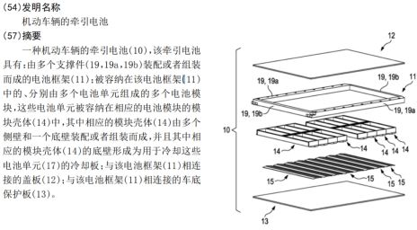 專利的說法備注:相應的模塊殼體的底壁具有上板和下板,上板和下板在第一區(qū)段上彼此貼靠并且在彼此連接,并且其中所述上板和下板在第二區(qū)段上是彼此間隔開的,同時形成冷卻通道。