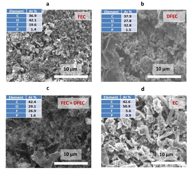 相比于EC溶劑,F(xiàn)EC溶劑中形成的SEI膜除了包含一些有機(jī)成分之外,還包含了一些無(wú)機(jī)成分例如碳酸鋰、氟化鋰、烷基碳酸鋰等成分,這種復(fù)合成分的SEI膜不僅賦予了SEI膜的良好的彈性,能夠適應(yīng)金屬鋰的體積變化,同時(shí)也能夠讓Li+快速穿過(guò)SEI膜。
