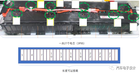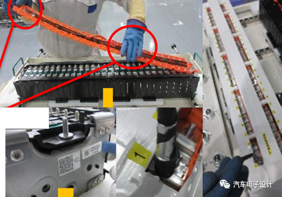 3)豐田設(shè)計(jì)的模組的電氣連接:和HEV、PHV一樣,豐田還是在這么長的模組上使用了一條很長的母線可拆解的連接帶,目的有幾個: