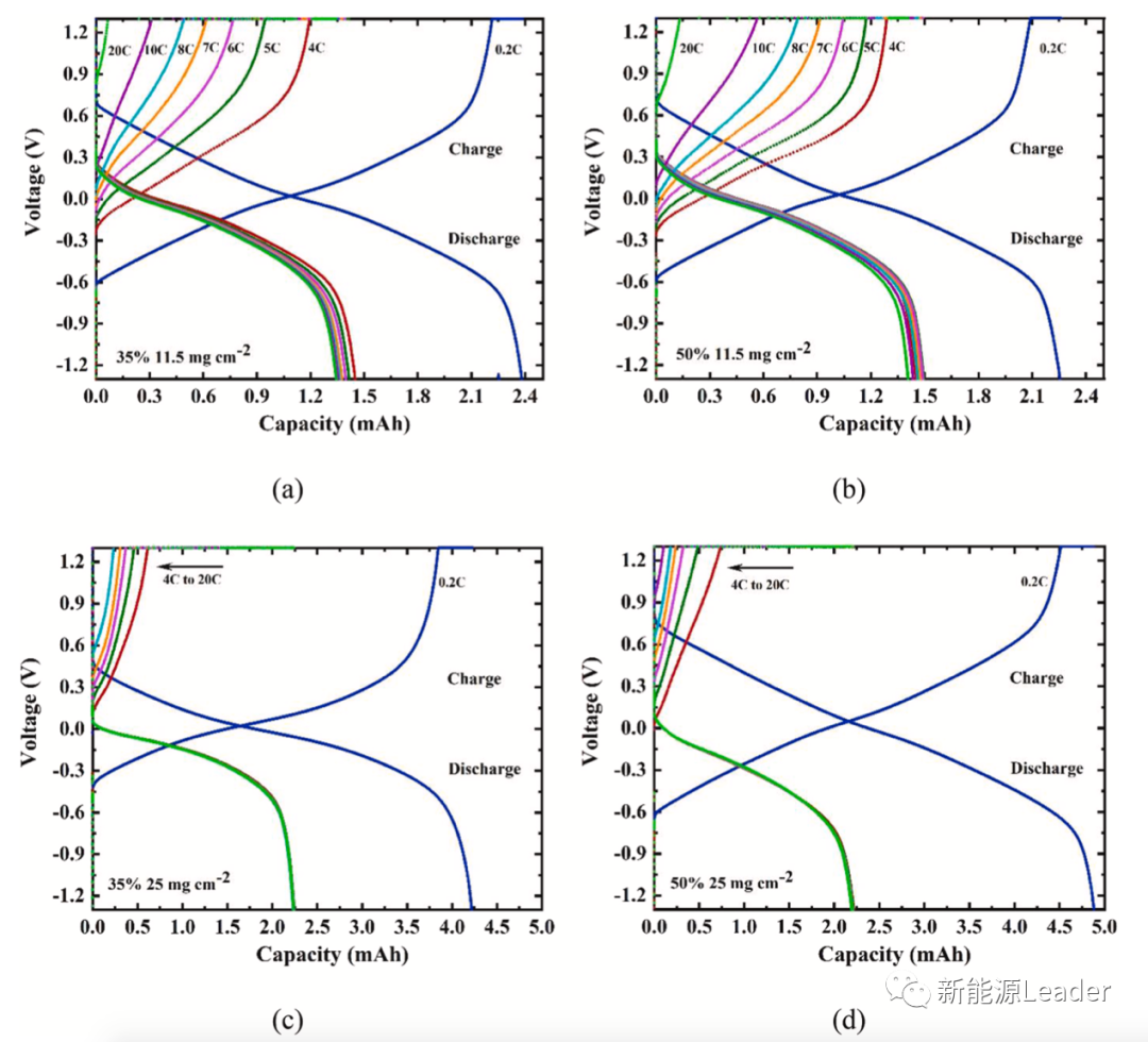 實(shí)驗(yàn)中作者將NCM622材料與PVDF(5130)和炭黑按照90:5:5的比例制備成漿料,并在鋁箔上涂布成涂布量分別為11.5、15、20和25mg/cm2的電極。