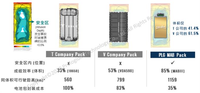 輝能方面透露,這款即將發表的電池,其電芯配方為NCM811正極+28%SiOx負極,依然是采用的混成固態,整顆電芯中只有重量不到4%的膠態電解質。在使用MAB技術制成PACK后,體積能量密度達480Wh/L。“如果將搭載了圓柱狀電池的T公司電池包替換成這款C=P電池包,根據能量密度來換算,續航里程將達到1159km。”