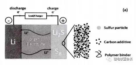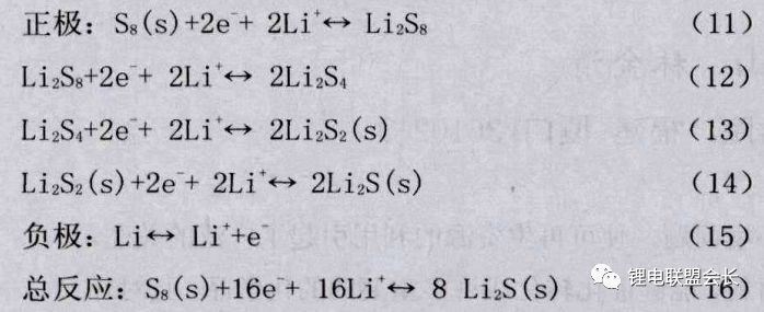 其中以正極材料為單質硫 (主要以S8環形態存在)計算,其理論比容量為1675mAh/g,理論放電電壓為2.287V,理論能量密度為2600Wh/kg。充放電時,電極反應如下所示: