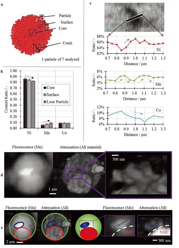 圖5. 次級(jí)NMC811顆粒中不均勻Mn含量的檢測(cè)