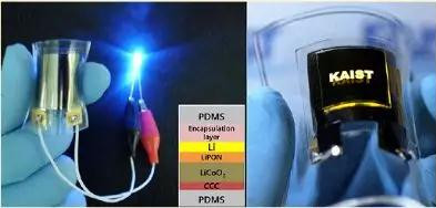 (韓國KAIST制備的典型疊層結構的柔性全固態電池)