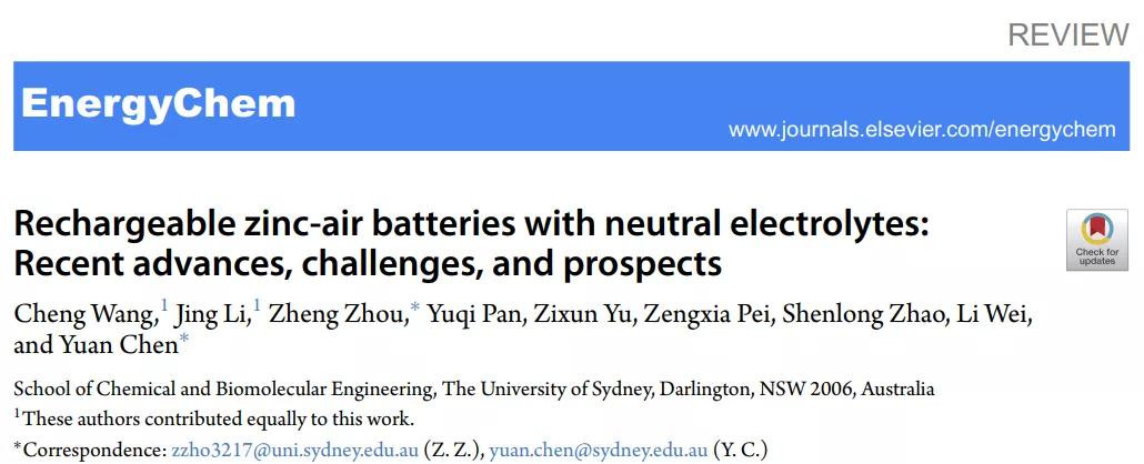 電池得到長循環壽命,中性電解液引起了研究者們極大的重視。本篇綜述從三個方面總結了可充電中性鋅空氣電池的最新研究進展:電解液、鋅負極和空氣正極。其中,中性電解液部分討論了水系無機/有機鹽溶液、鹽包水電解液和凝膠電解質。鋅負極部分回顧了中性電解液中提升金屬鋅負極穩定性的方法。空氣正極部分比較了中性和堿性電解液中析氧反應和氧還原反應的反應機理,同時總結了可在中性條件下使用的催化劑。文章末尾對未來可充電中性鋅空電池的發展方向提出了展望。