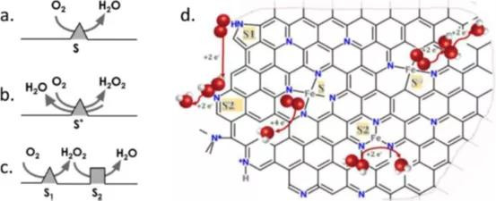 空氣正極在放電時通過氧還原反應消耗氧氣,在充電時通過析氧反應釋放氧氣。文中首先介紹了析氧反應和氧還原反應的基本反應機理,并著重比較了析氧反應和氧還原反應在中性和堿性電解液中的不同。接著介紹了各種適合在中性鋅空氣電池中使用的催化劑,并歸納總結了兩種提升它們催化性能的方法。