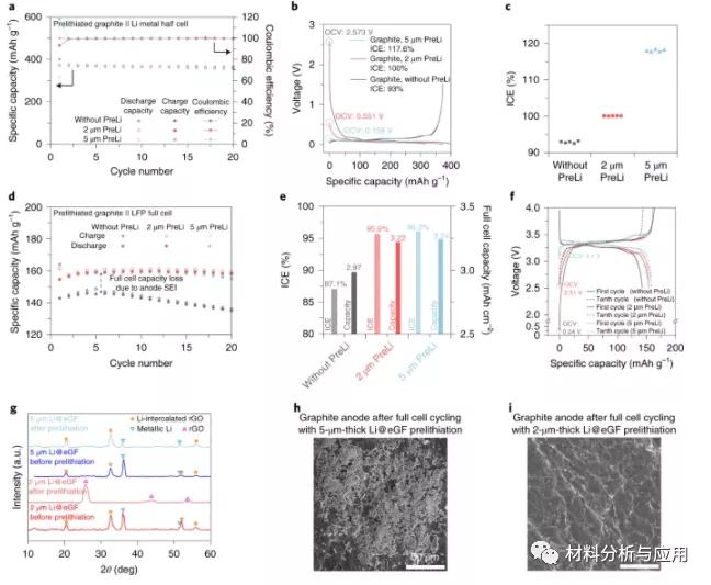 圖3:超薄Li-eGF薄膜可實現精確的預鋰化和理想的石墨陽極ICE。