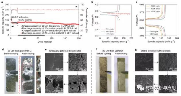 圖5:超薄Li-eGF薄膜提高了鋰金屬的穩定性 LFP滿格。