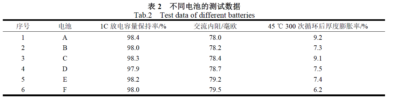 表2匯總了各電池的測試數據。