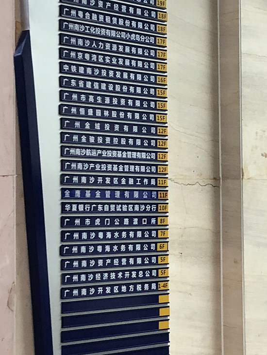 南沙金融大廈的樓層指引