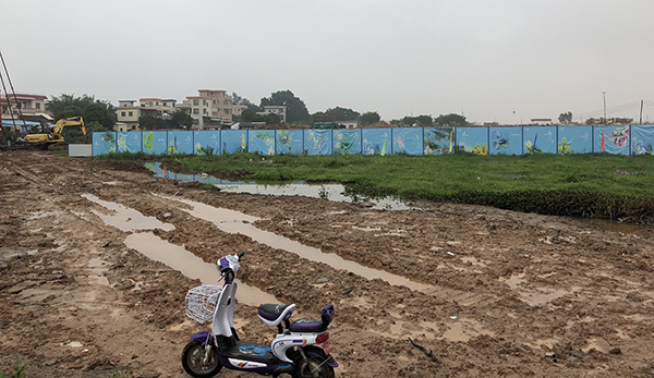 在睿馳汽車拍下的地塊旁邊的工地外的圍欄上的信息顯示,這里正在進行的是南沙電子信息產業園項目(三期)項目,這里有兩位工人告訴記者,他們是土方隊伍,這里還沒開建,建筑隊伍還沒進來,“這里屬于電子信息產業園,有好幾個標段,現在還沒有開工,還要好久。”一位工人指著睿馳汽車地塊方向,一片紅色的簡易住房稱,“那邊空房是住工人的,那邊一大片要建個啥廠。”