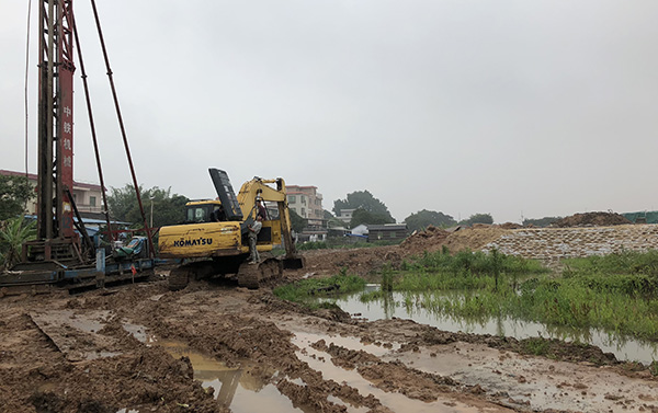 現場有4位工人正在修理挖機,在記者問及這里是在建什么時,其中一位表示:“要修汽車廠。”但另一位則對記者稱,自己并不知道這里要修什么,他們的工作就是“打樁”。