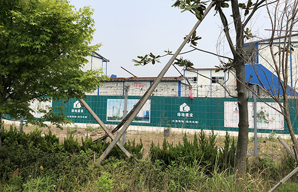 從外部向鐵絲網內看,工地還是處于荒蕪的階段,幾乎看不到什么施工裝置,不過可看見大門內的道路上停了兩輛大貨車,警務站外停了一輛小轎車。