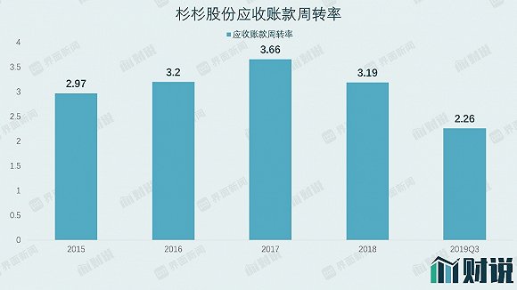 與存貨周轉率表現相似的是應收賬款周轉率。截至2019Q3,其應收賬款周轉率僅為2.26,近年來呈現下降趨勢,同樣創了近3年新低。應收賬款周轉率的不斷下滑,影響企業資金正常周轉,增加了壞賬風險,表明杉杉股份對下游客戶的話語權及產品競爭力逐漸降低。