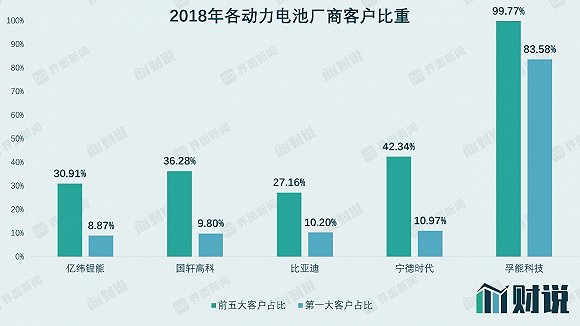 孚能科技客戶集中度之高,在行業(yè)中屬于異類。作為對比,2018年寧德時代前五大客戶銷售收入占比為42.34%,其中第一大客戶占比10.97%。比亞迪(59.700, -0.44, -0.73%)(002594.SZ)前五大客戶銷售收入占比為27.16%,其中第一大客戶占比10.2%;國軒高科前五大客戶銷售收入占比為36.28%,其中第一大客戶占比9.8%;億緯鋰能(59.170, -0.01, -0.02%)(300014.SZ)前五大客戶銷售收入占比為30.91%,其中第一大客戶占比8.87%。不難發(fā)現(xiàn),已上市的同類企業(yè),前五大客戶各自占比均較為平均。