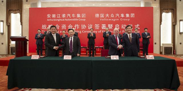 大眾在中國的兩項重磅投資在兩天內(nèi)密集落定。5月28日晚,國軒高科發(fā)布公高稱,大眾汽車(中國)投資有限公司(下稱“大眾中國”)將對國軒高科進行戰(zhàn)略投資,成為國軒高科持股26.47%的第一大股東。5月29日早,大眾官宣了兩起在華投資,除了以約11億歐元入股國軒高科外,對江淮的投資更為重磅:將投資10億歐元獲得安徽江淮汽車集團股份有限公司母公司——安徽江淮汽車集團控股有限公司50% 的股份,同時增持電動汽車合資企業(yè)江淮大眾股份至75%。兩起投資約21億歐元,約合人民幣166億元。