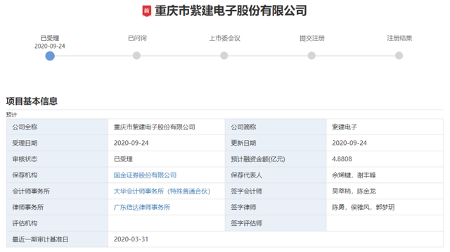近日,深交所正式受理重慶市紫建電子股份有限公司(簡稱“紫建電子”)的創業板IPO申請。
