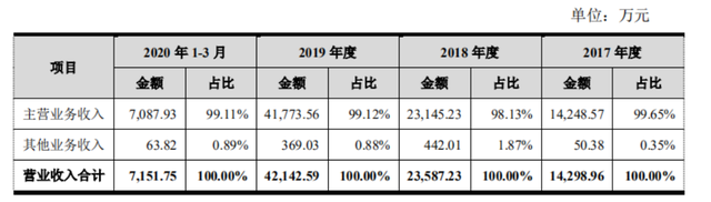 據招股書披露,2017年度、2018年度、2019年度和2020年1-3月,該公司前五大客戶收入占當期營業收入的比重分別為36.97%、41.18%、57.66%和45.48%,客戶集中度較高。