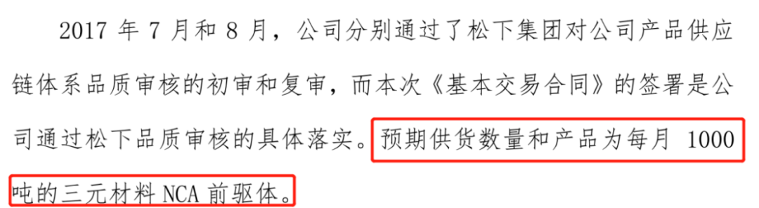2017年7月,松下要求芳源環(huán)保向其供貨。一個月后,芳源環(huán)保與松下正式簽訂批量供應(yīng)合同。此后,芳源環(huán)保與松下長期保持合作。