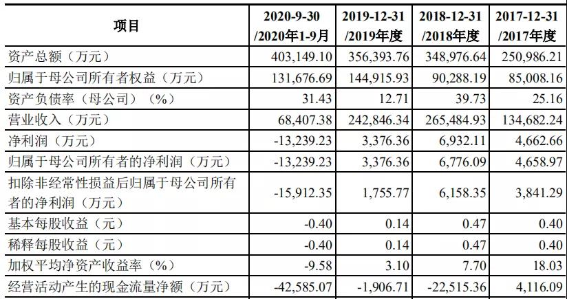 據招股書顯示,2017年、2018年、2019年及2020年1—9月(下稱報告期),振華新材營業收入分別為13.47億元、26.55億元、24.28億元及6.84億元;同期歸母凈利潤分別為4658.97萬元、6776.09萬元、3376.36萬元及-1.32億元。