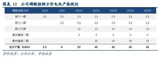 財報顯示,2020年億緯鋰能動力電池出貨量4.7GWh,同比增長71%,其中鐵鋰2.3GWh,三元軟包2.4GWh。公司磷酸鐵鋰電池目前產能為6GWh,預計今年下半年將擴到20GWh,隨著惠州工廠產能全部釋放,2022年底產能將達到40GWh。