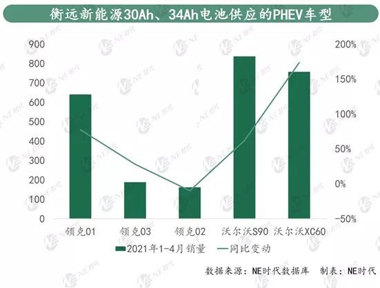 NE時代數據庫資料顯示,衡遠新能源30Ah的電池此前主要供應沃爾沃和領克PHEV車型,目前供應領克01/02/03三款車型,沃爾沃S90/XC60電池由此前的30Ah升級為34Ah,但是領克PHEV系列車型銷量都不是很理想。
