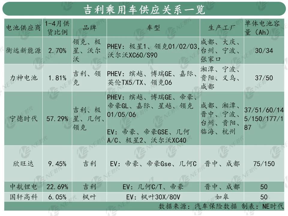 真正核心的供應關系在寧德時代,基本上包攬了吉利、極星、幾何、領克四個品牌旗下主要車型。