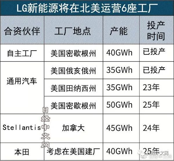 今后,LG新能源將在約3年里與合資伙伴總計投資超過2萬億日元,構(gòu)建6座工廠的體制。該公司目前在北美的生產(chǎn)比例約為7%,到2025年將提高至45%。LG新能源的首席執(zhí)行官(CEO)權(quán)暎壽把北美市場定位為“最積極拓展的市場”。