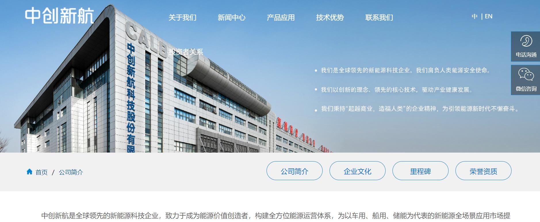 ▲截圖來源:中創新航官網