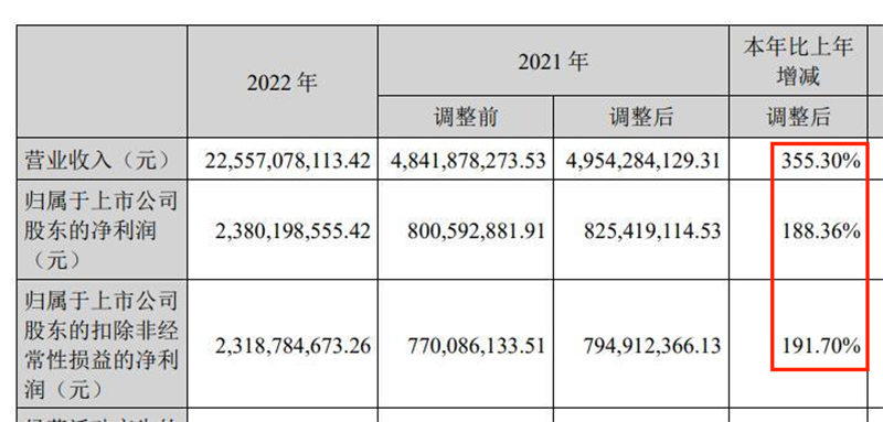 然而,2022年一季度,由于產品銷售量價齊升,德方納米凈利潤高達7.62億元,相較上年同期大增1402.77%。同時,2022年年報顯示,德方納米全年實現營收225.57億元,同比增長355.30%,凈利潤23.80億元,同比增長188.36%,其中2022年第四季度公司5.53億元。