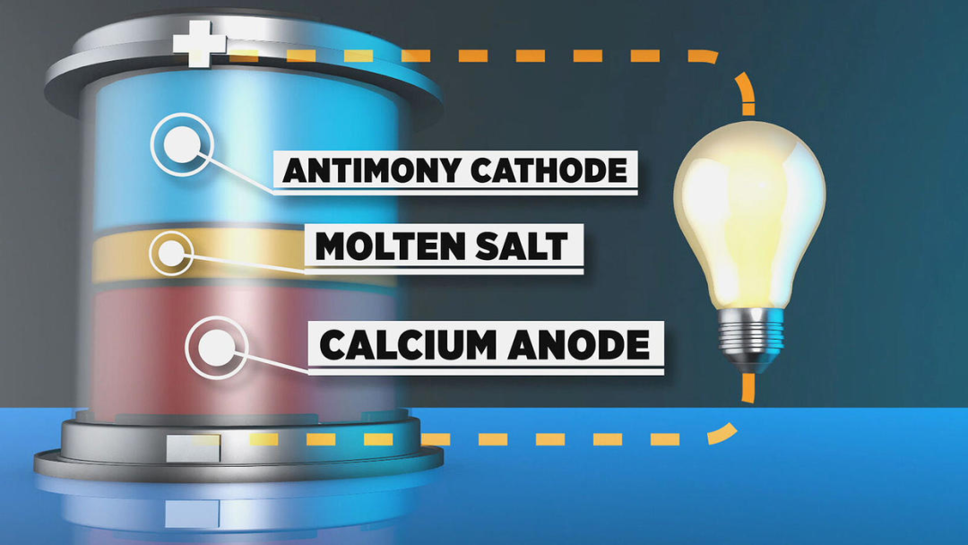 顧名思義,液態金屬電池的陰極、陽極和電解質均由高溫下的液態金屬組成。Sadoway找到的“配方”是負極用鎂(后改用鈣),正極用銻,電解質為熔鹽。通過將電池加熱到 500°C,產生的電化學反應可以儲存或放電電力。全液體減少了電池中可能發生的電極退化,使用壽命長達20年。