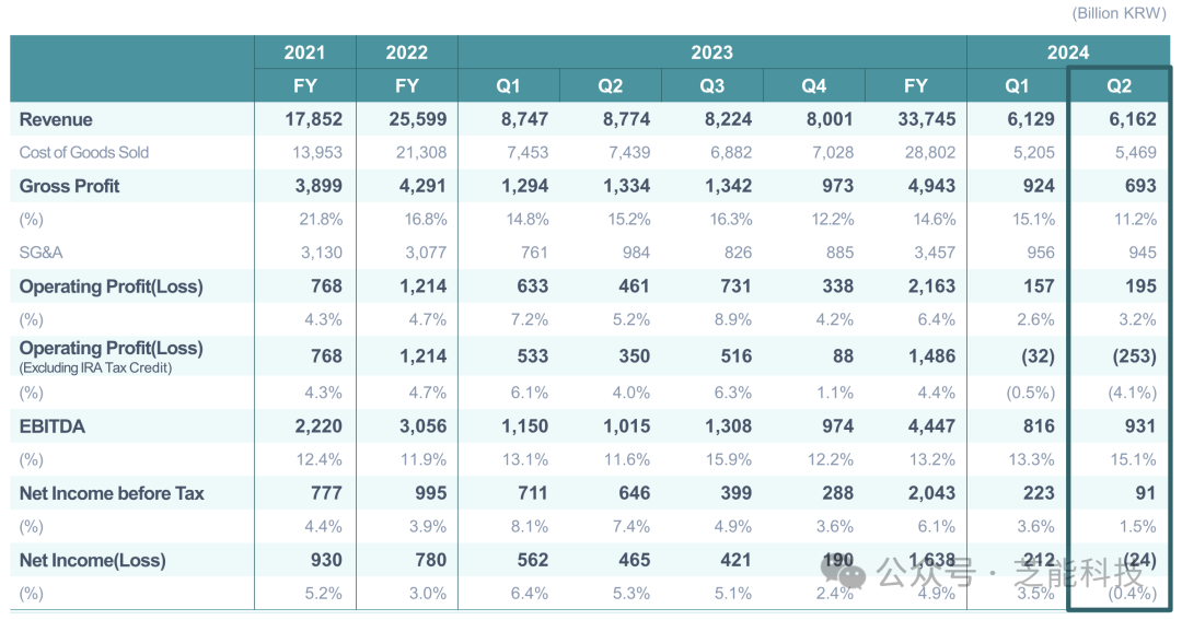 LG新能源公布了2024年第二季度財報,在全球電動汽車市場放緩的大環境下: