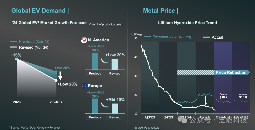 LG預測,今年全球電動汽車市場增長將放緩,從去年的36%降至略高于20%,美國和歐洲地區尤為明顯。