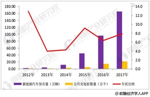 據前瞻產業研究院發布的《電動汽車充電樁行業發展前景預測與投資戰略規劃分析報告》數據顯示,截至2017年底,全國共建成公共充電樁21.39萬個,私人充電樁23.18萬個。目前我國電動汽車車樁比僅為3.8:1,充電樁整體規模滯后。以目前充電樁保有量來看,為達到2020年480萬個充電樁的目標,2018至2020年充電樁安裝數量將成爆發式增長。
